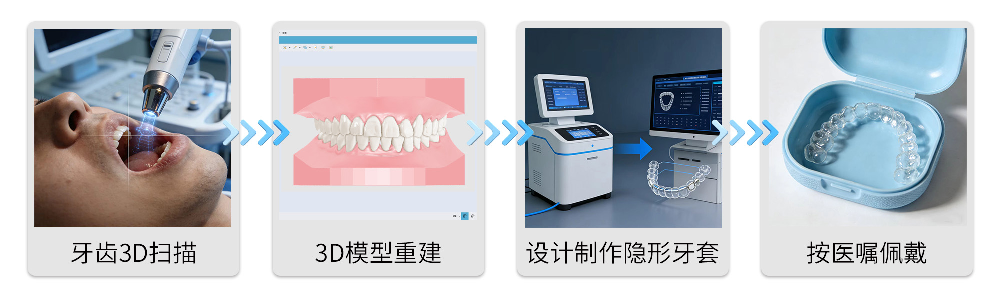 我们通过牙齿3D扫描、自主设计矫正方案、3D模型打印,制作出专属于患者的隐形牙套。让您既能享受隐形矫正带来的美学优势,又能有效改善牙齿不齐的问题,提升前牙美观度,关键是不用承担高昂的费用。
